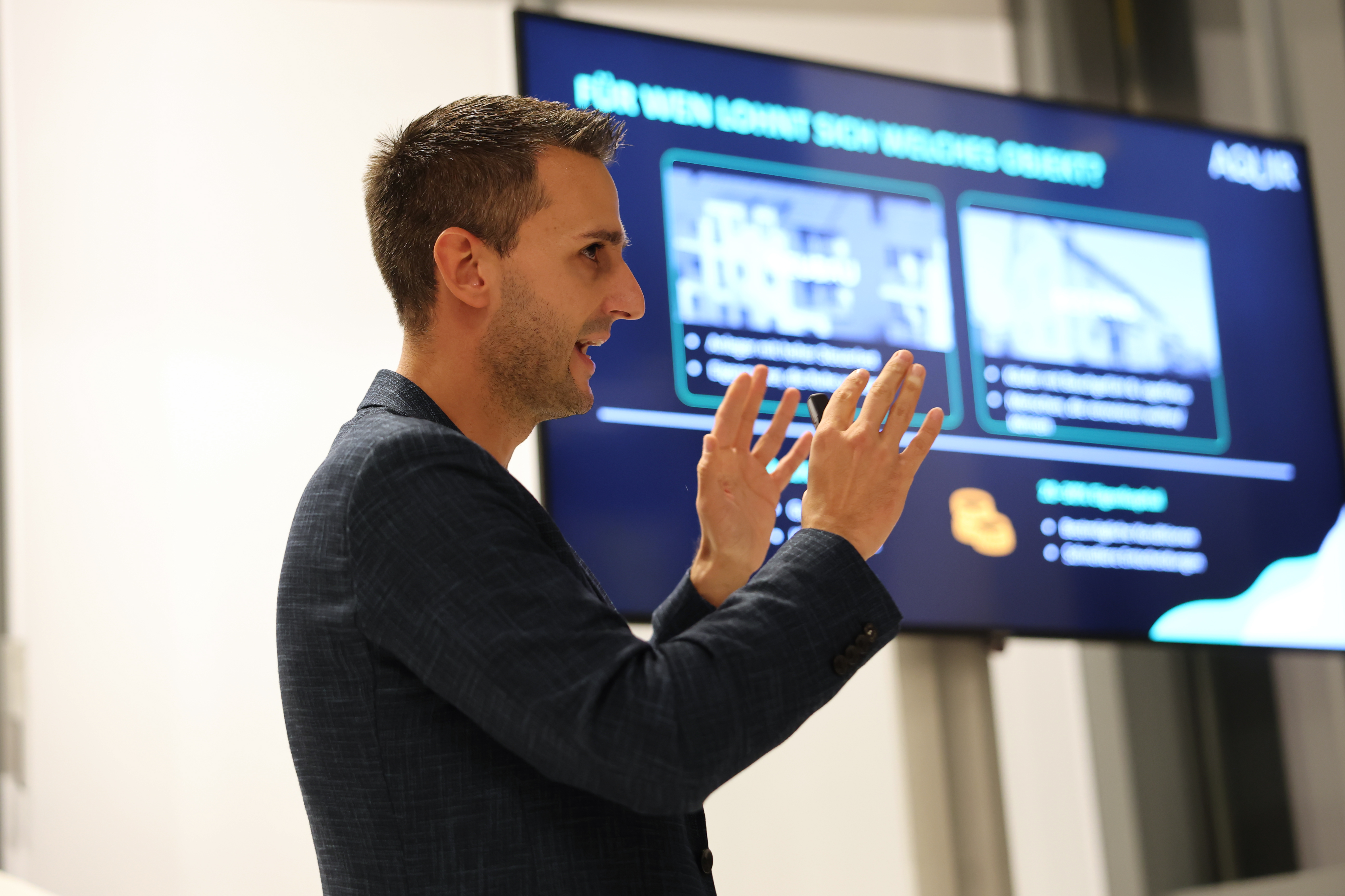 Im Anschluss vermittelte Finanzierungsspezialist Alexander Krüger von Aquir fundiertes Grundlagenwissen zur Immobilienfinanzierung. Praxisnah und verständlich erklärte er, welche Stellschrauben entscheidend sind, wie Finanzierung strategisch eingesetzt wird und warum sie ein zentrales Instrument für nachhaltigen Vermögensaufbau darstellt.