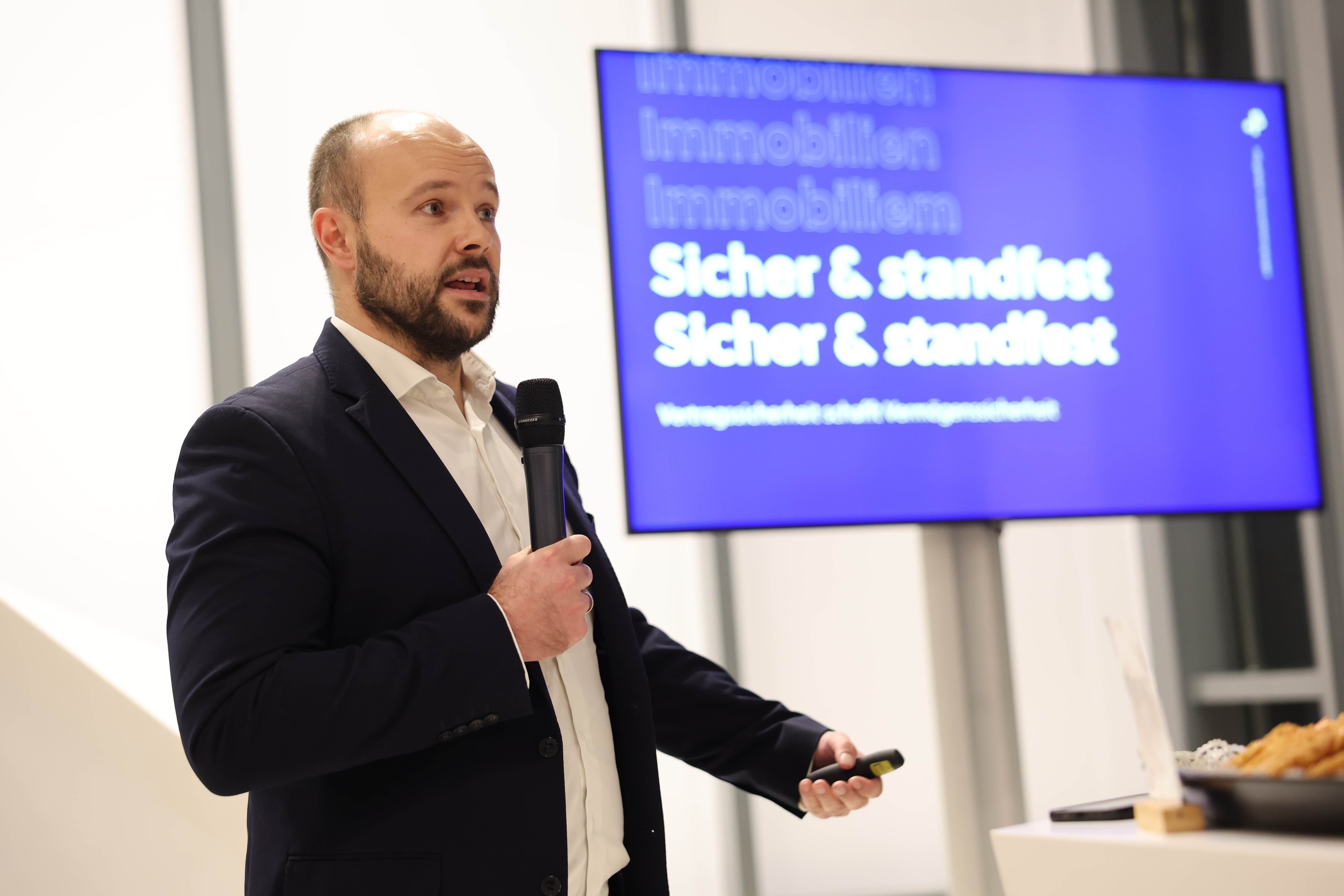 Den Abschluss bildete Marcel Heidenreich, Volljurist und Rechtsassessor bei Notare Dr. Dr. Damm & Dr. Mayer. In seinem Impuls „Sicher & Standfest“ beleuchtete er die rechtlichen Grundlagen des Immobilienerwerbs, erklärte Vertragsstrukturen und machte deutlich, wie entscheidend saubere juristische Rahmenbedingungen für eine nachhaltige und sichere Kapitalanlage sind.